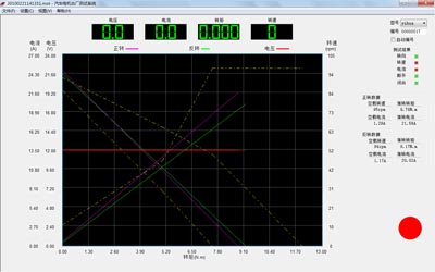 1.自動高速連續正反轉測試:在0~20秒內連續加載測試,從空載到堵轉的M=f(I,n)特性曲線,采樣率可達每秒50~100點。 自動上下限超值報警:對預先設定的電流I上限和轉速n上下限邊界線,自動判別進行超值不合格報警。